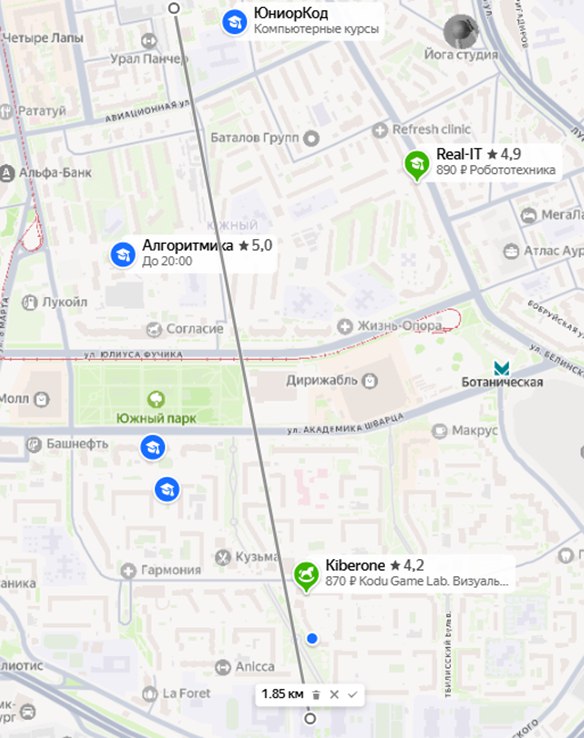 На скриншоте пример количества школ программирования в радиусе 1 километр и со всеми ими вам приходится конкурировать.